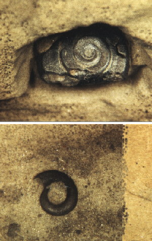 Zechsteinkalk, Eisleben ca. 5 mm Ansicht von oben, teilweise präpariert Ansicht von unten |
